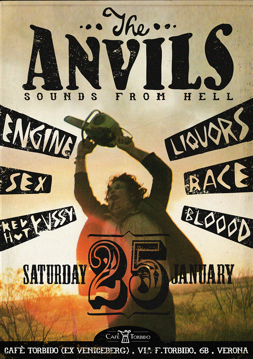 In occasione della ventesima ediazione della Bike Expò di Verona il duo Anvil composto da San Marco e Phonz si esibirà con il loro dj set in chiave Southern rock, Country, R&R per la prima volta a Verona nello spazio Cafè Torbido. Piccolo Bistrò in stile berlinese, cibo di qualità, drinks e una visione surreale. Intimo e di ricerca tra cibo e design crea un atmosfera accogliente nel mezzo di una pompa di benzina. Nessun altra location migliore per infiammare le anime perse dei poveri malcapitati.